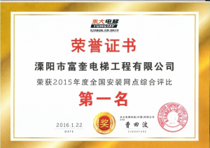溧陽市富奎電梯工程有限公司 溧陽市富奎電梯工程有限公司是于二OO八年一月九日在原前身溧陽市電梯工程公司基礎上成立的,是專業(yè)從事電梯銷售安裝維修、保養(yǎng)的企業(yè)。是國家質(zhì)監(jiān)總局頒發(fā)的特種設備安裝、改造、維修A級安裝許可證單位。公司組織機構(gòu)實行總經(jīng)理負責制,公司下設管理部、銷售部、安裝維修部、質(zhì)安部、財務部,公司另外設十二個分公司:四川分公司、江蘇分公司、上海分公司、浙江分公司、湖南分公司、遼寧分公司、山東分...